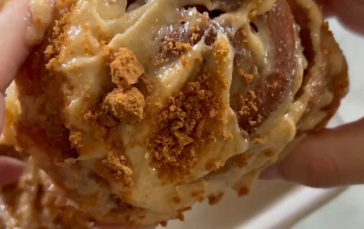Spread the frosting over the warm rolls. Sprinkle with crushed Biscoff cookies. Enjoy!